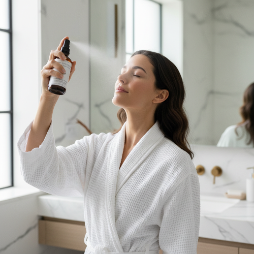 A refreshing floral facial mist, gentle enough to use daily. Infused with botanical hydrosols that will cleanse, tone, and moisturize even the most sensitive skin. Based on a famous recipe favoured by many herbalists, this mixture was created for the aging Elizabeth of Poland, Queen of Hungary, by an alchemist in 1320 to restore her youthfulness. According to the legend, it reversed her appearance so much that the 25-year-old Grand Duke of Lithuania asked for her hand in marriage when she was 72. Some say the tonic was handed to the Queen herself directly from the hands of an angel. Made in Canada.